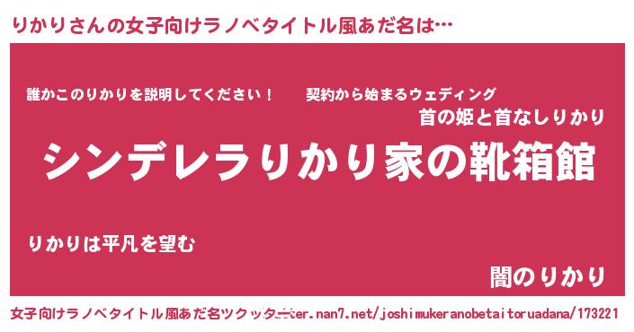 | 男性向けラノベタイトル風あだ名 | 『冴えないりかりの育てかた』 |