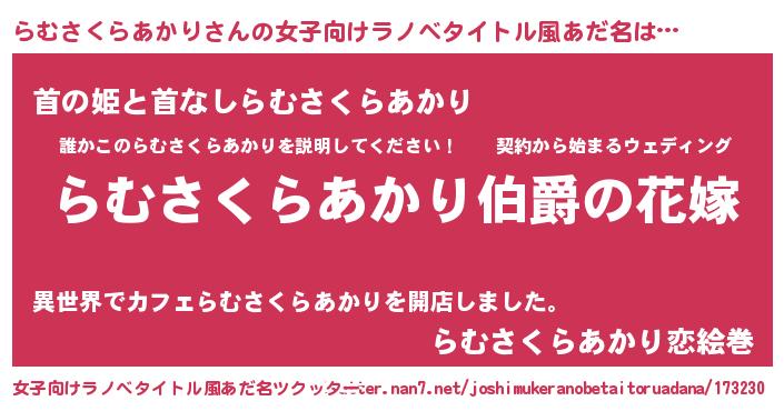| 意味不明あだ名 | 『らむさくらあかりフォーエバー』 |