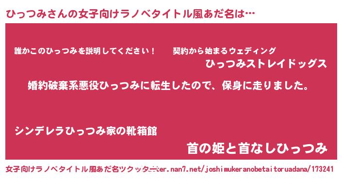 | 胡散臭い通販商品みたいなあだ名 | 『必ず成功する水晶球…その名も「ひっつみ」』 |