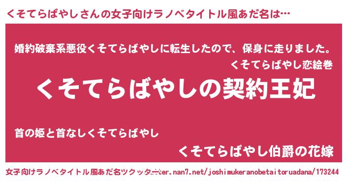 | 胡散臭い通販商品みたいなあだ名 | 『来世でも幸せになれる水素水…その名も「くそてらばやし」』 |