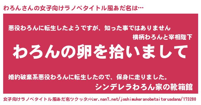 | 胡散臭い通販商品みたいなあだ名 | 『伝統あるサプリメント…その名も「わろん」』 |