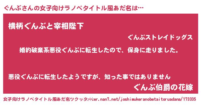 | 男性向けラノベタイトル風あだ名 | 『グンブスレイヤー』 |