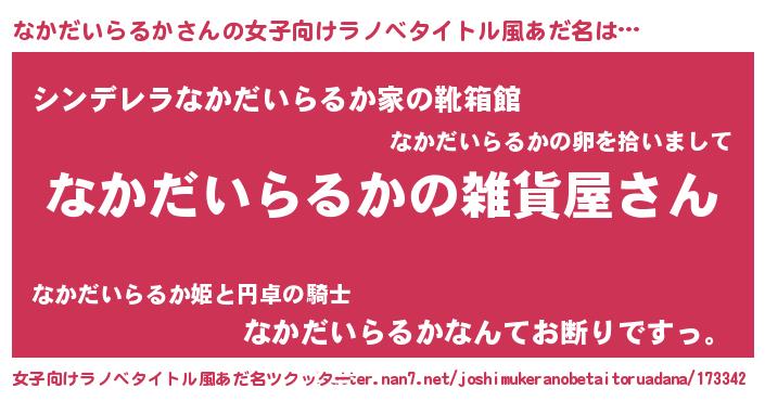 | 男性向けラノベタイトル風あだ名 | 『やはりなかだいらるかの青春ラブコメはまちがっている 』 |