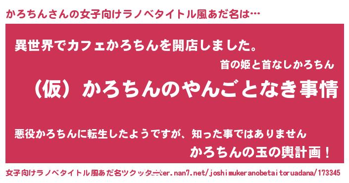 | 男性向けラノベタイトル風あだ名 | 『かろちんの憂鬱』 |