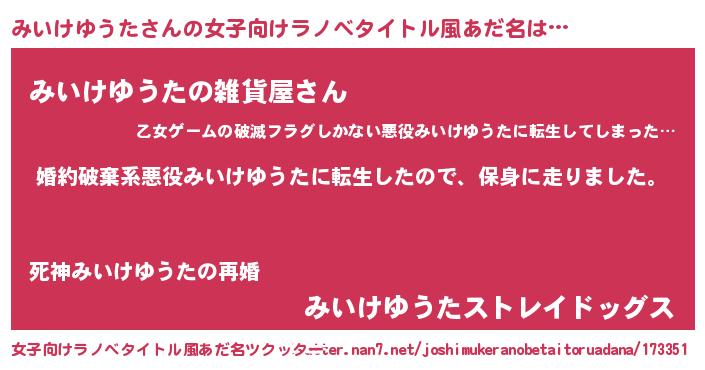 | 恥ずかしいあだ名 | 『みいっちょ』『ミイケユウタデラックス』 |