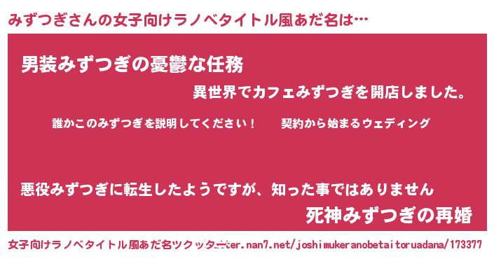 | 男性向けラノベタイトル風あだ名 | 『ミズツギアートオンライン』 |