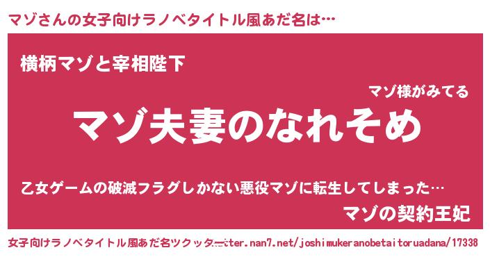 | ヘコむあだ名 | 『マゾ(遠い目)』『マゾを』 |