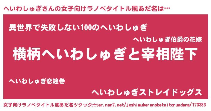 | 胡散臭い通販商品みたいなあだ名 | 『前代未聞の水素水…その名も「へいわしゅぎ」』 |