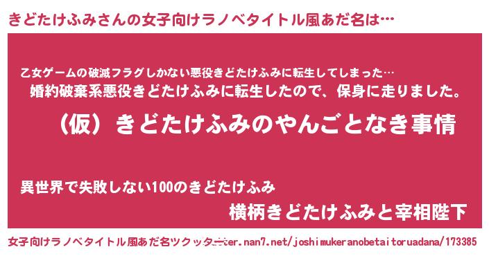 | 胡散臭い通販商品みたいなあだ名 | 『必ず成功するブレスレット…その名も「きどたけふみ」』 |