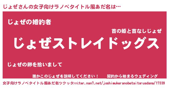 | 男性向けラノベタイトル風あだ名 | 『Re:じょぜから始める異世界生活』 |