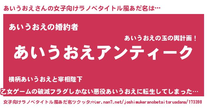 | 男性向けラノベタイトル風あだ名 | 『魔法科高校のあいうおえ』 |