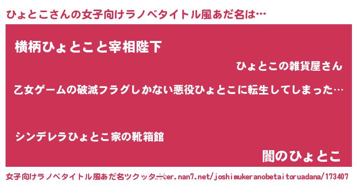 | 胡散臭い通販商品みたいなあだ名 | 『世界中を虜にした100年もののヴィンテージワイン…その名も「ひょとこ」』 |