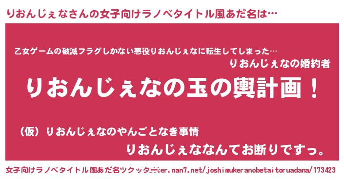 | 胡散臭い通販商品みたいなあだ名 | 『あなたにだけ特別に提供する世界で10本だけ現存している希少なブランデー…その名も「りおんじぇな」』 |