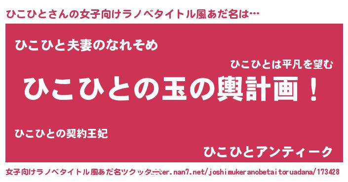 | ヒーロー風カッコイイあだ名 | 『愛の使者ひこひと』『最強戦士ヒコヒト』 |