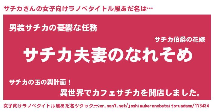 | 男性向けラノベタイトル風あだ名 | 『おまえをオタクにしてやるから、俺をサチカにしてくれ! 』 |