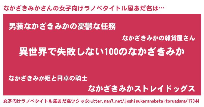 | 男性向けラノベタイトル風あだ名 | 『なかざきみかという概念が存在しない退屈な世界 』 |