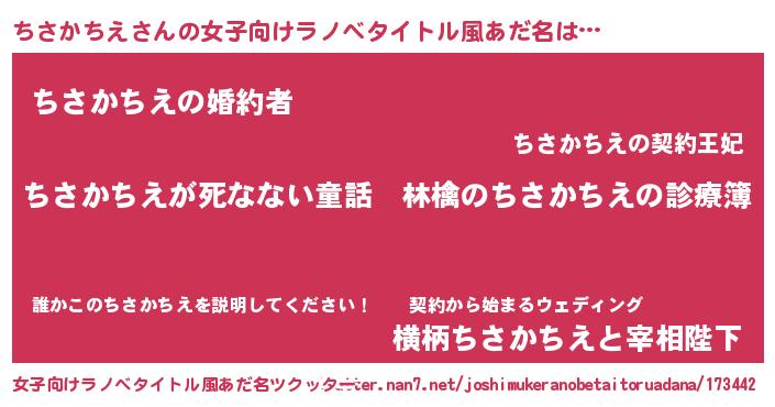 | 意味不明あだ名 | 『住所不定無職ちさかちえ(7歳)』 |