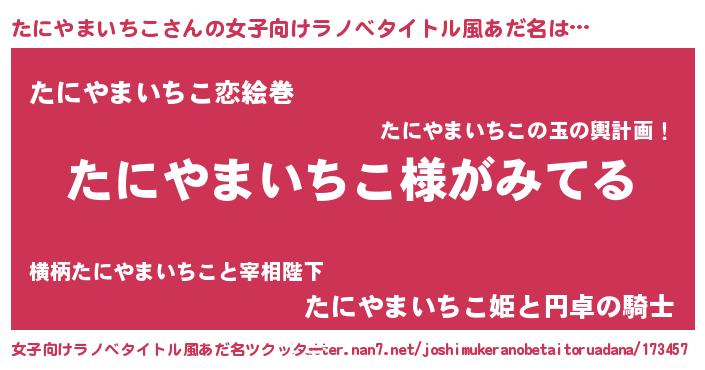 | 意味不明あだ名 | 『とにかく怪しいたにやまいちこ』 |
