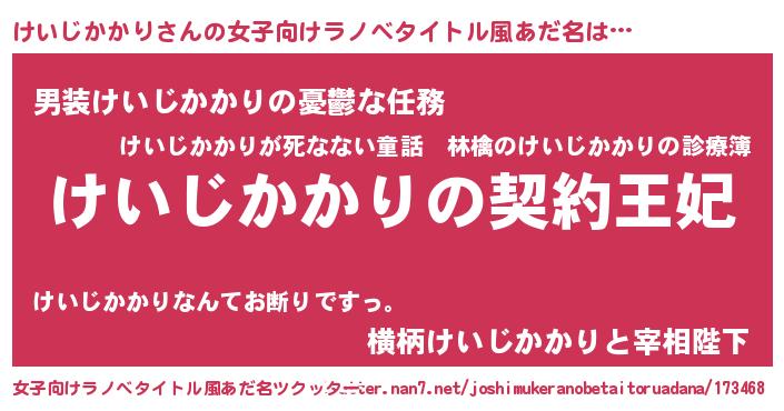 | 胡散臭い通販商品みたいなあだ名 | 『来世でも幸せになれる水素水…その名も「けいじかかり」』 |