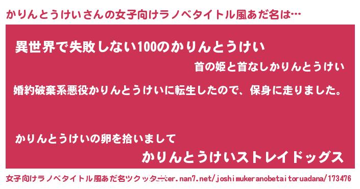 男性向けラノベタイトル風あだ名 | 『カリントウケイスレイヤー』 |