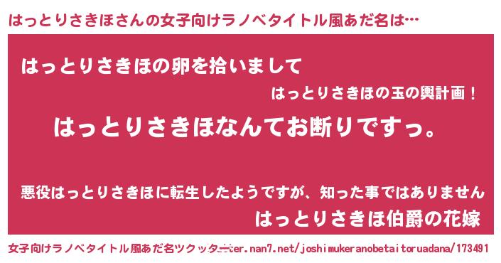 | 胡散臭い通販商品みたいなあだ名 | 『ガンによく効く冬虫夏草…その名も「はっとりさきほ」』 |