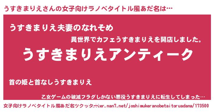 | 男性向けラノベタイトル風あだ名 | 『魔法科高校のうすきまりえ』 |