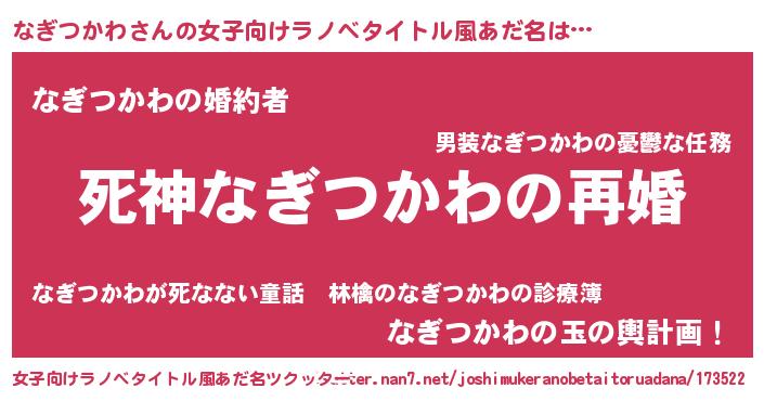| 男性向けラノベタイトル風あだ名 | 『ノーゲーム・ノーナギツカワ』 |