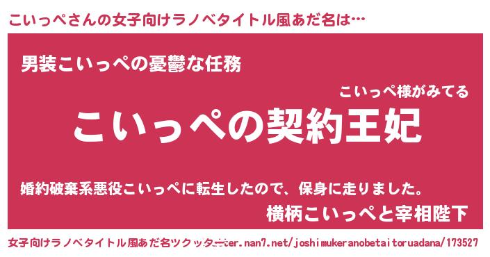 | 男性向けラノベタイトル風あだ名 | 『誰もが恐れるあのこいっぺが、ぼくの専属メイドになるようです。』 |