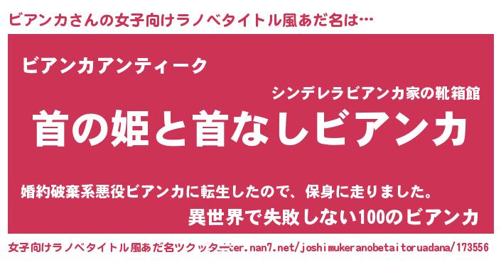 | 男性向けラノベタイトル風あだ名 | 『はたらくビアンカさま!』 |