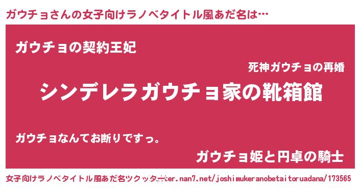| 胡散臭い通販商品みたいなあだ名 | 『絶対に幸福をもたらす水素水…その名も「ガウチョ」』 |