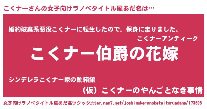 | 男性向けラノベタイトル風あだ名 | 『やはりこくナーの青春ラブコメはまちがっている 』 |