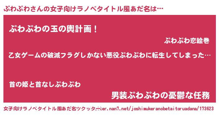 | 男性向けラノベタイトル風あだ名 | 『魔弾の王とぷわぷわ』 |