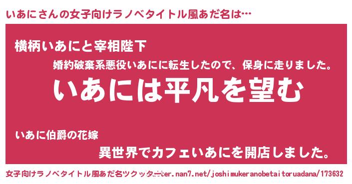 | 胡散臭い通販商品みたいなあだ名 | 『信頼と実績のサプリメント…その名も「いあに」』 |