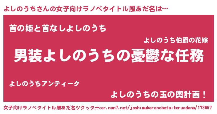 | 胡散臭い通販商品みたいなあだ名 | 『運命の人と巡り会える高級そうな絵画…その名も「よしのうち」』 |