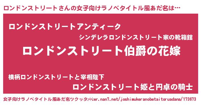 | 男性向けラノベタイトル風あだ名 | 『やはりロンドンストリートの青春ラブコメはまちがっている 』 |