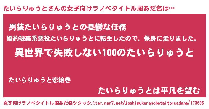 | 胡散臭い通販商品みたいなあだ名 | 『絶対に幸福をもたらす健康食品…その名も「たいらりゅうと」』 |