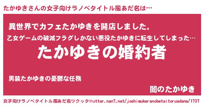 | ファンタジー風あだ名 | 『エターナルタカユキー』『ゼタカトゥ』 |