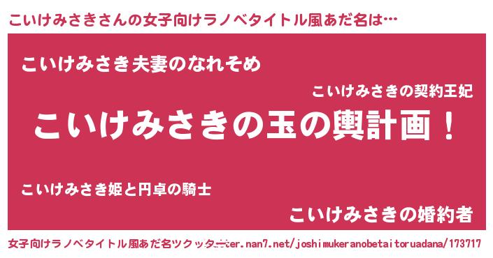 | 男性向けラノベタイトル風あだ名 | 『転生したらこいけみさきだった件』 |