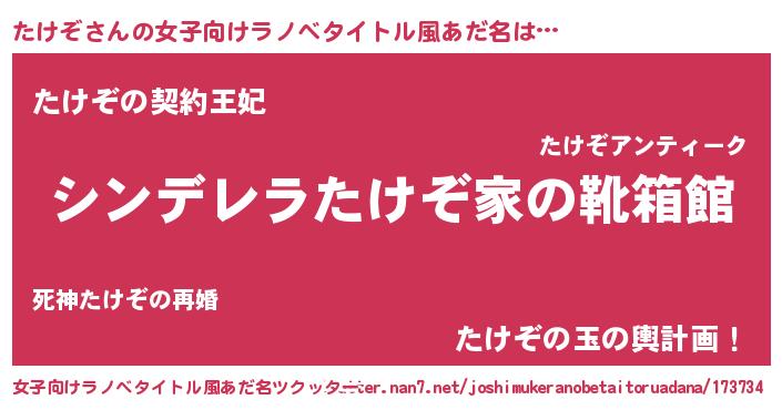 | 男性向けラノベタイトル風あだ名 | 『緋弾のタケゾ』『魔法科高校のたけぞ』 |