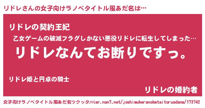 | 恥ずかしいあだ名 | 『リドレデラックス』『リドちん』 |