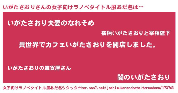| 胡散臭い通販商品みたいなあだ名 | 『前代未聞の健康食品…その名も「いがたさおり」』 |