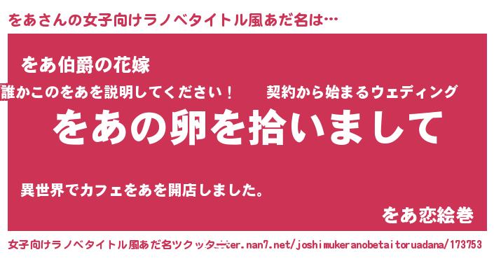 | 男性向けラノベタイトル風あだ名 | 『をあの嫁は女の子じゃないと思った?』 |