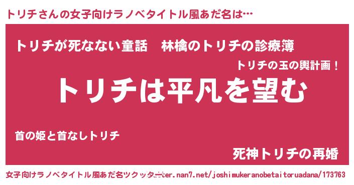 | 胡散臭い通販商品みたいなあだ名 | 『信頼と実績のサプリメント…その名も「トリチ」』 |
