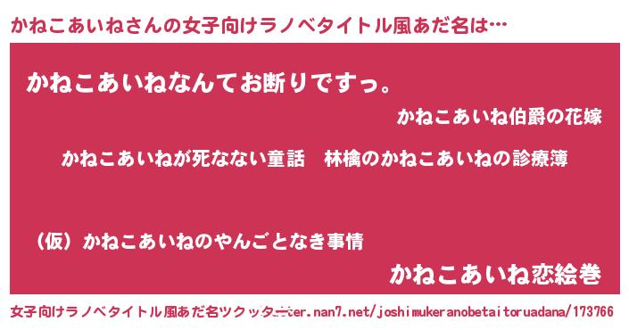 | 意味不明あだ名 | 『住所不定無職かねこあいね(50歳)』 |