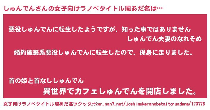 | 胡散臭い通販商品みたいなあだ名 | 『ハリウッド女優が絶賛した100年もののヴィンテージワイン…その名も「しゅんでん」』 |