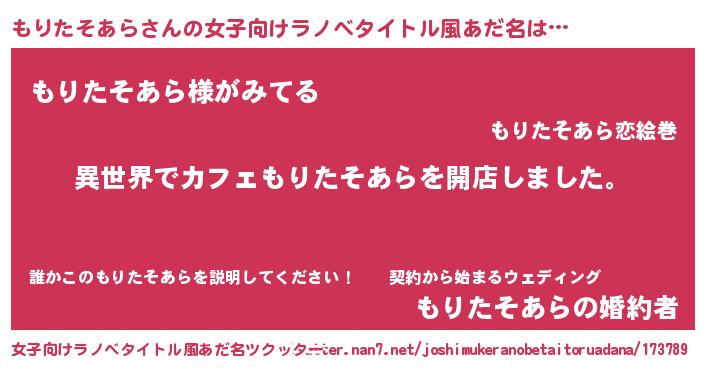 | 男性向けラノベタイトル風あだ名 | 『誰もが恐れるあのもりたそあらが、ぼくの専属メイドになるようです。』 |