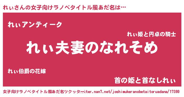 | 男性向けラノベタイトル風あだ名 | 『おまえをオタクにしてやるから、俺をれぃにしてくれ! 』 |