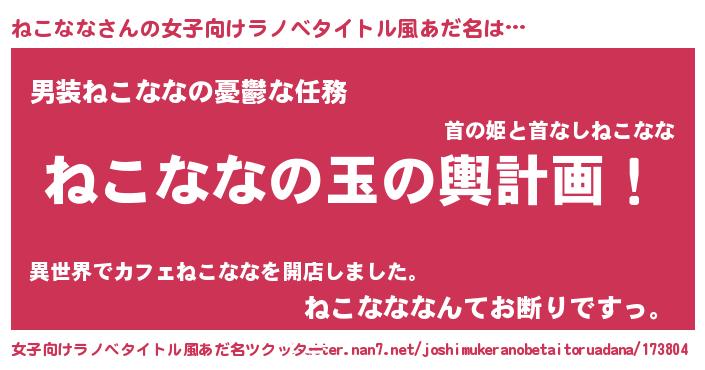 | 意味不明あだ名 | 『ニラ科ねこなな属』『自称ねこなな』 |