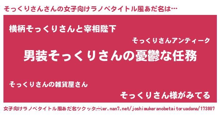 | ヒーロー風カッコイイあだ名 | 『天弓騎士ソッ』『最強戦士ソックリサン』 |