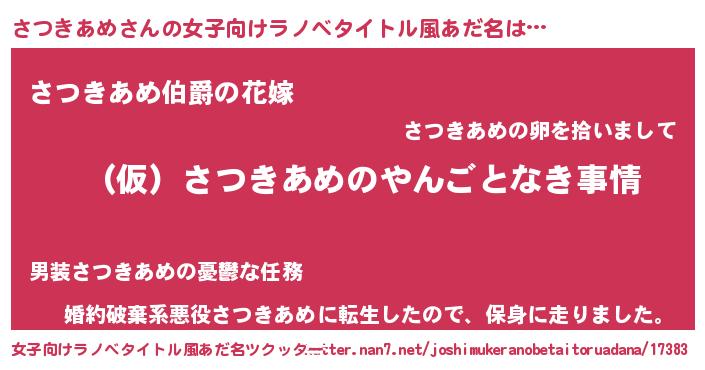 | ファンタジー風あだ名 | 『サツフェル』『エターナルサツキアメー』 |